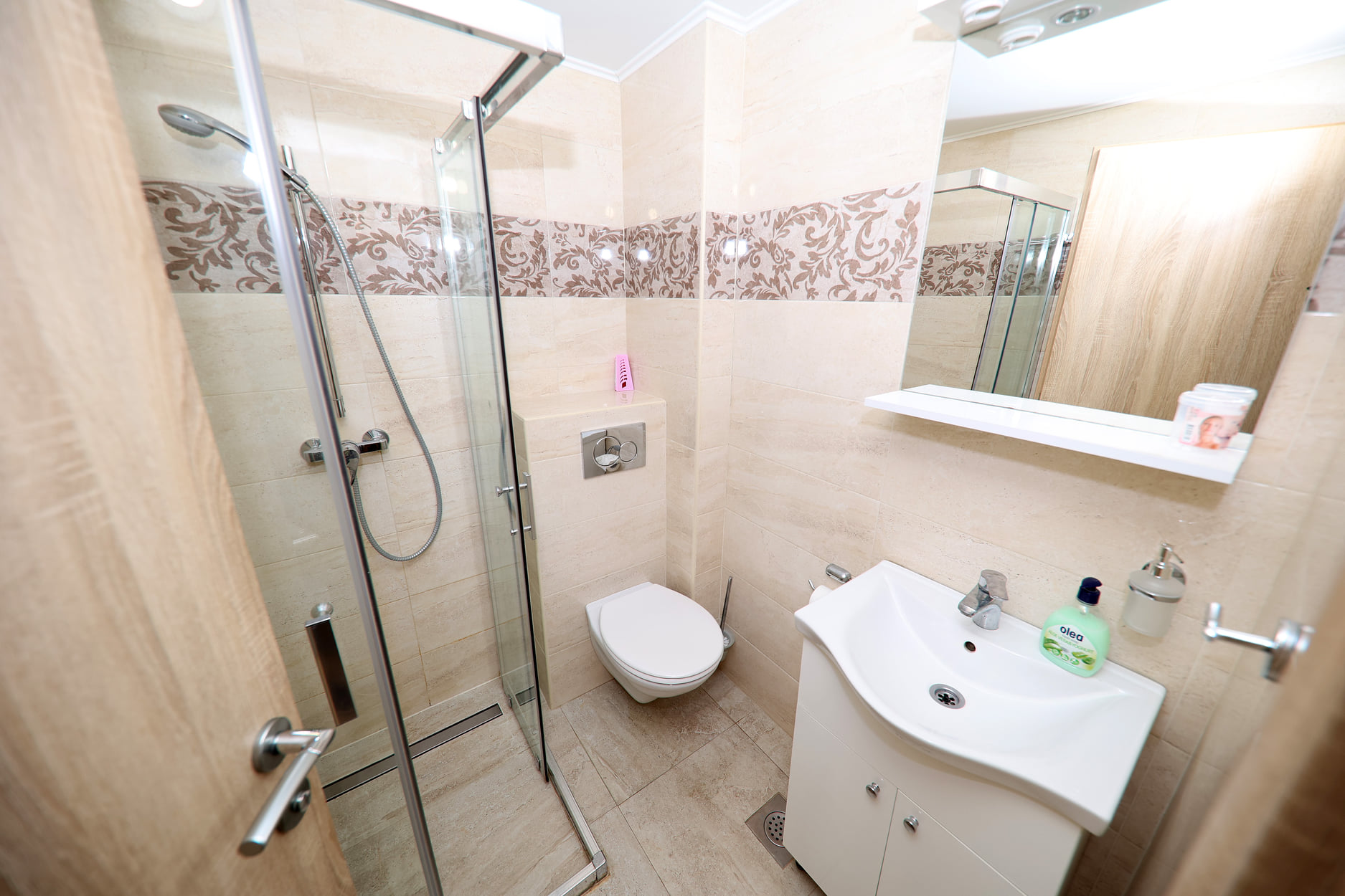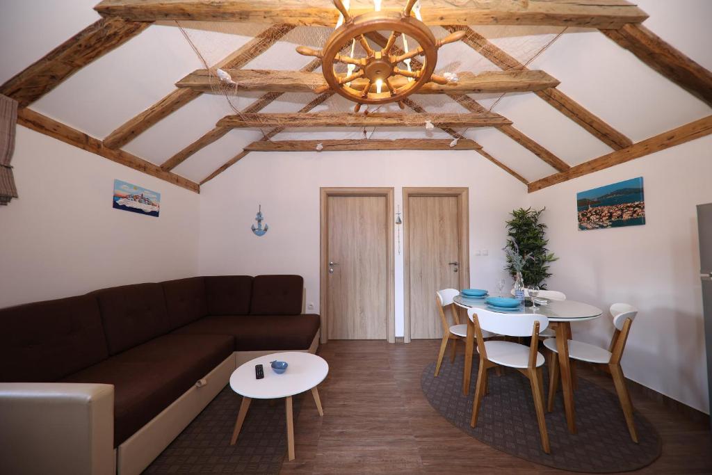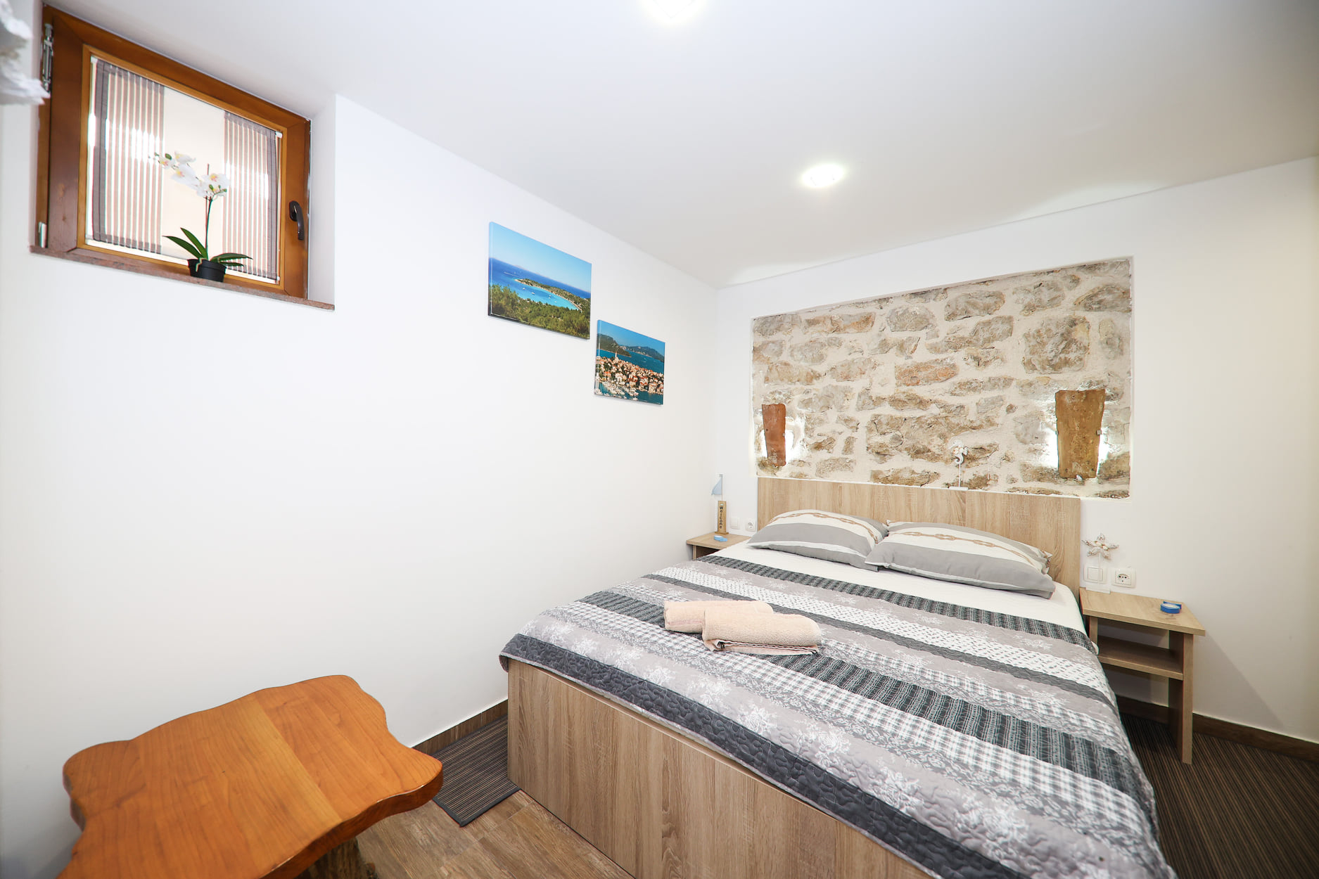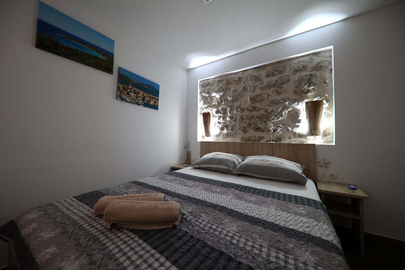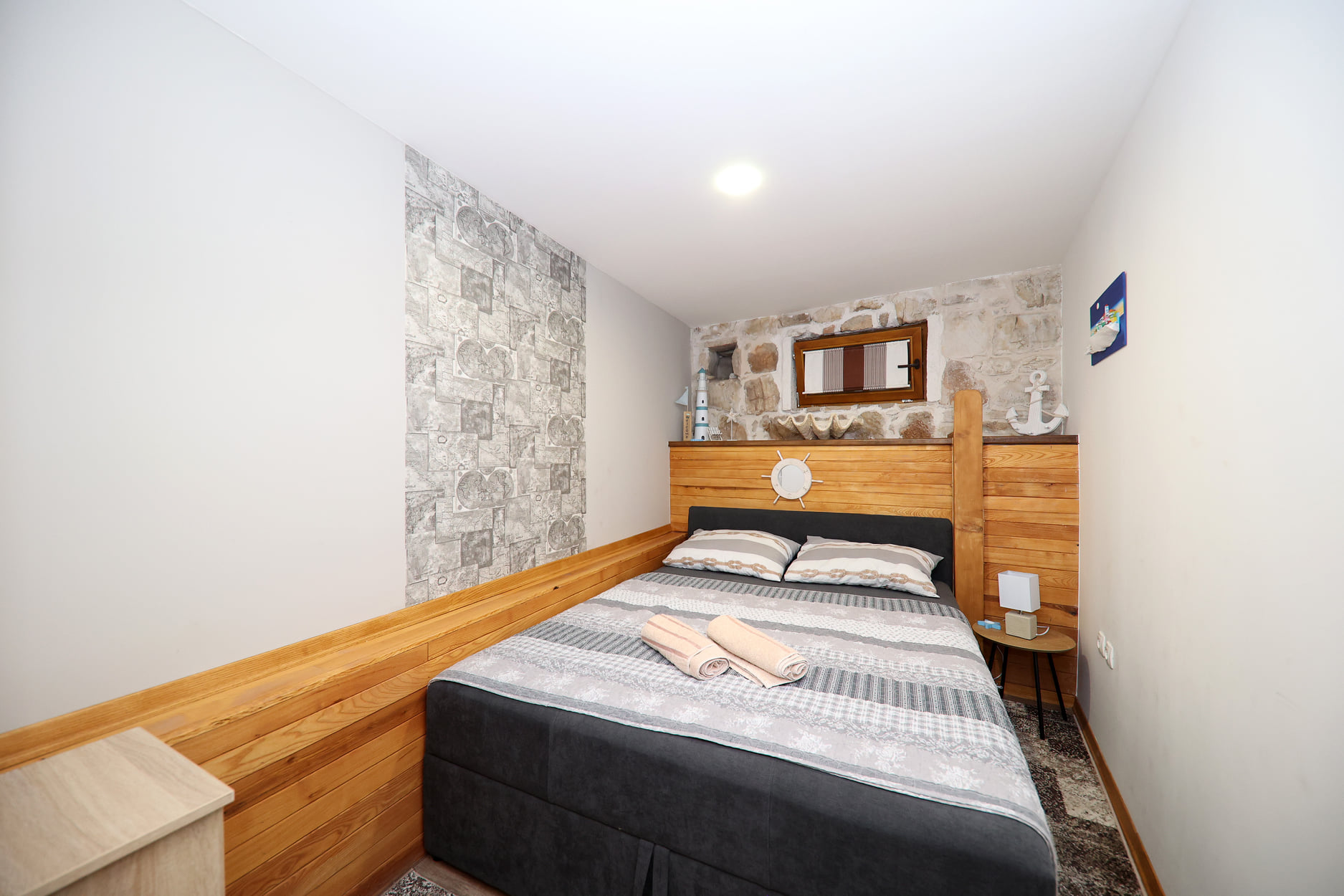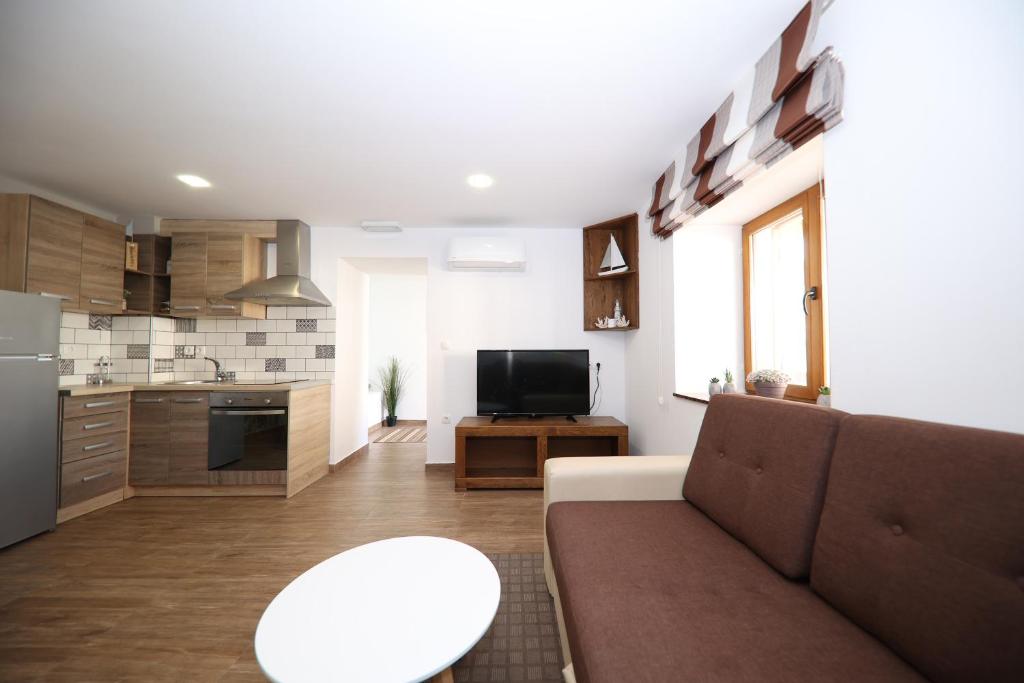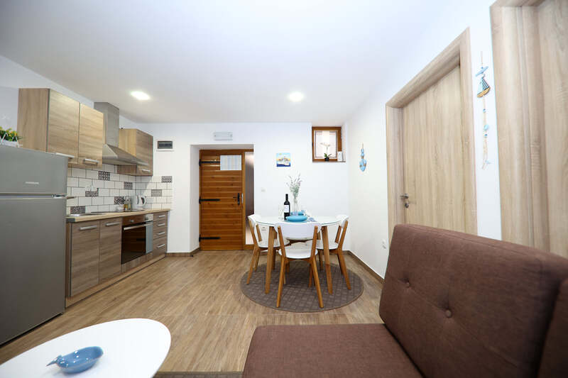 Apartment A2 is located on the ground floor, right at the entrance to the building. It has the most preserved stone arches and walls, thus conjuring a special atmosphere of living. It also has a special large and spacious arched bathroom with a large mirror. The living room has lots of wooden decorative wall elements and antique furniture.
