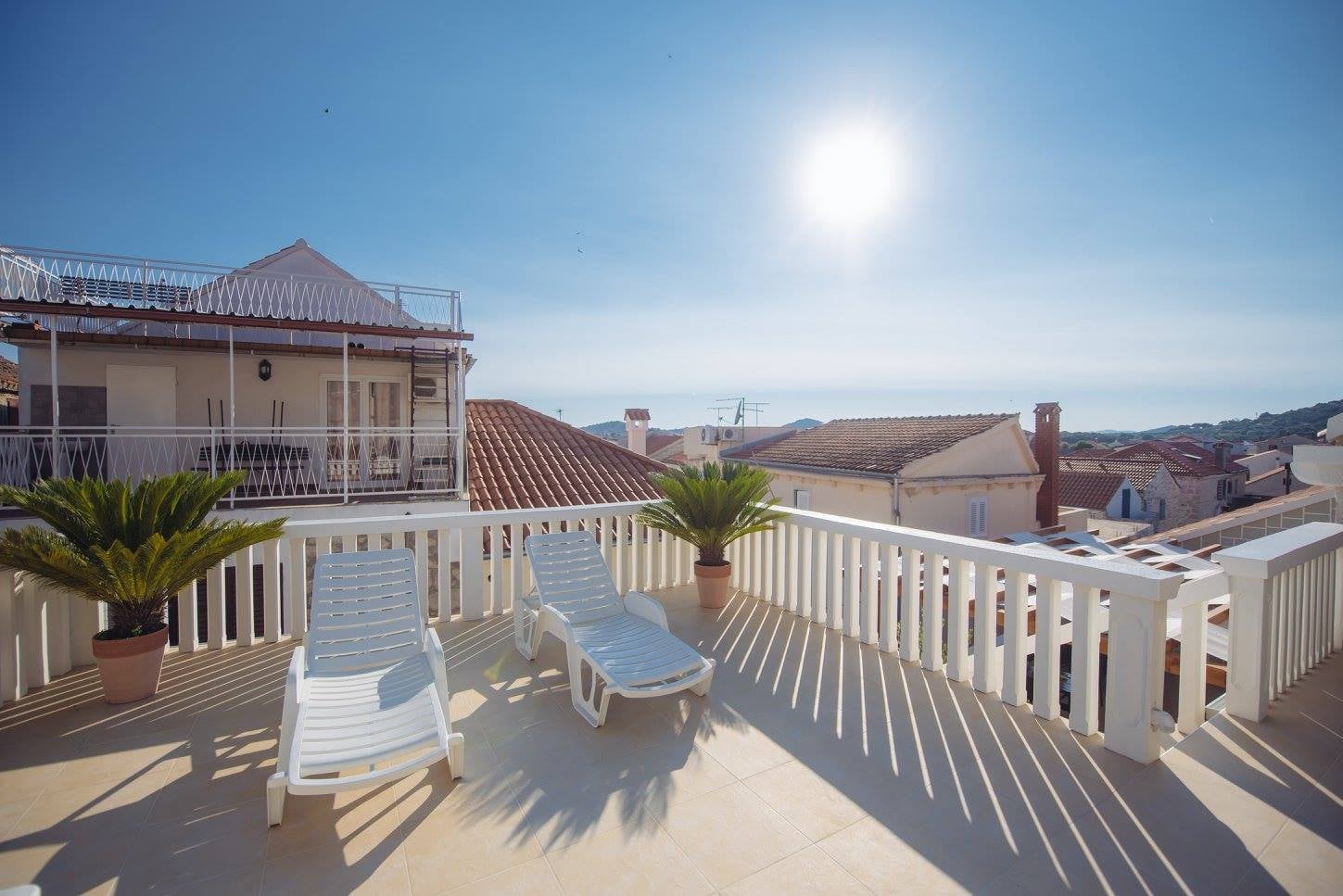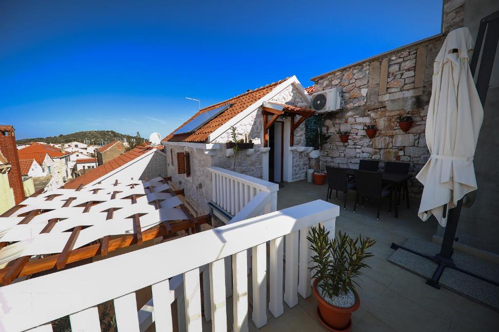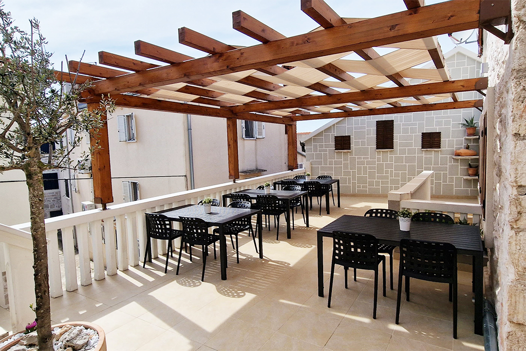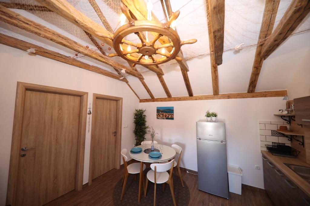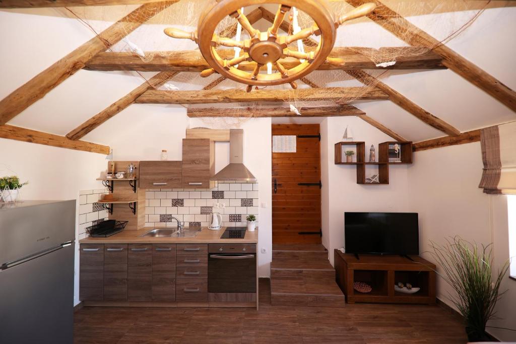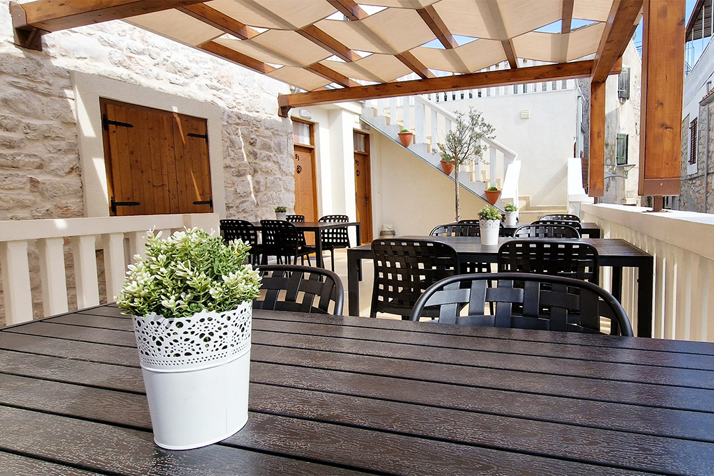 Apartment C1 is the highest located apartment (2nd floor) in the house and is the apartment with the most beautiful view. Guests will enjoy the marine decoration combined with the originally preserved wooden roof. Certainly its specialty is a huge private terrace measuring 30m2. Guests can enjoy a sun lounger and views of the old streets of Betina.